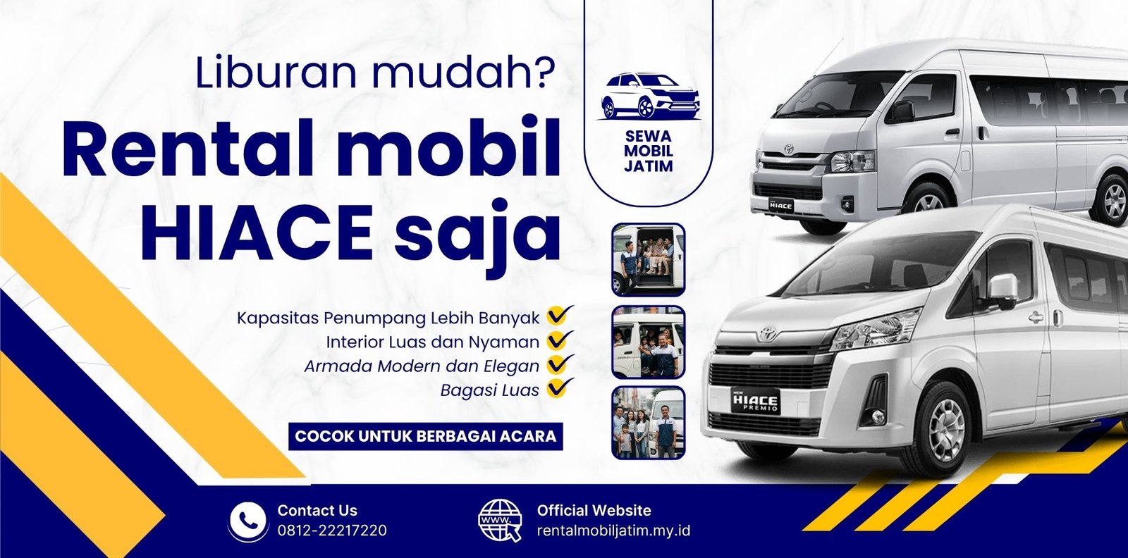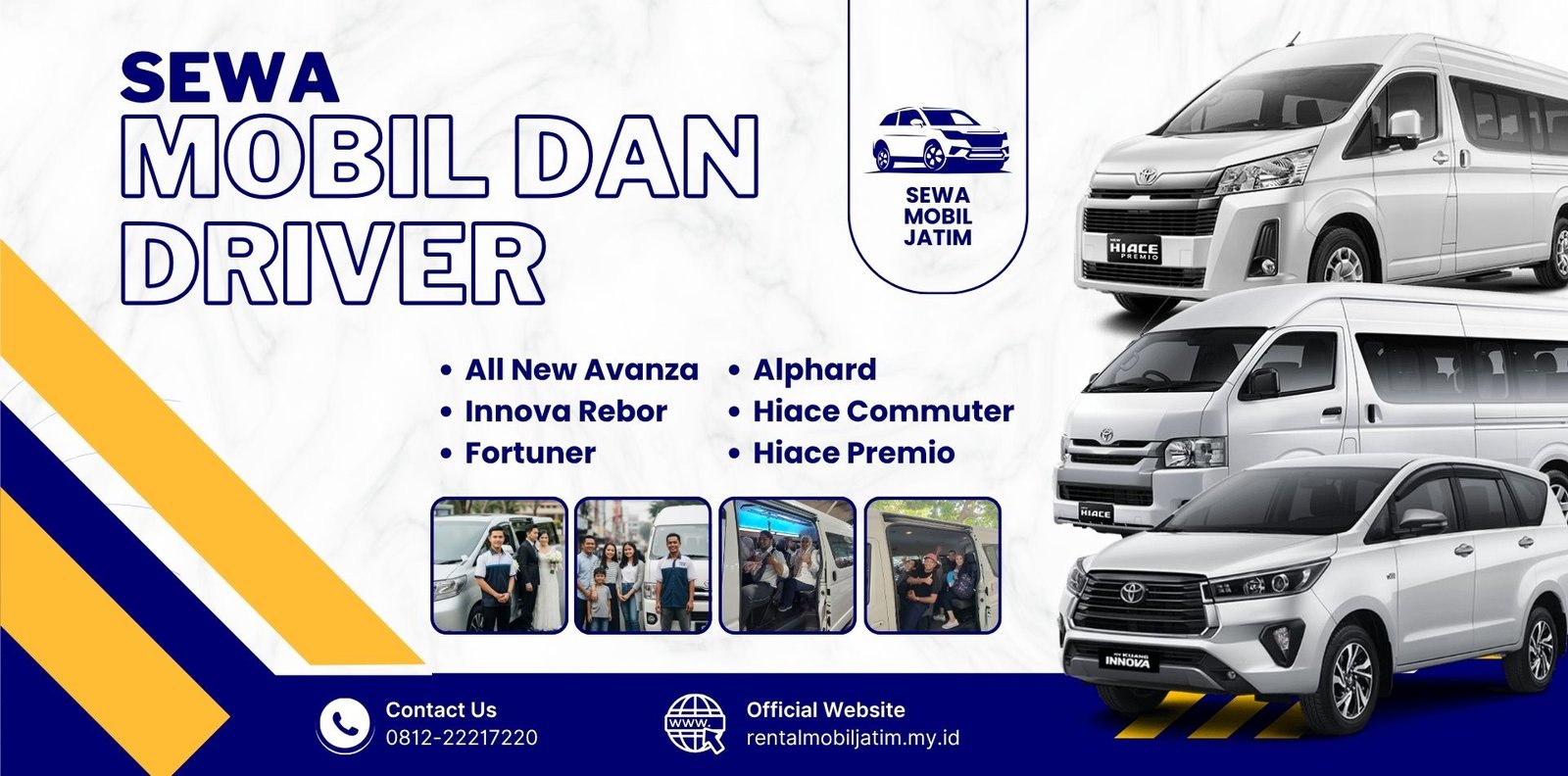 Sewa Mobil Jawa Timur, solusi transportasi premium dan profesional untuk segala kebutuhan perjalanan Anda di wilayah Jawa Timur. Kami hadir untuk memberikan pengalaman perjalanan yang aman, nyaman, dan fleksibel, dengan armada mobil yang bersih, terawat, dan siap digunakan kapan saja. Layanan kami menjangkau berbagai kota dan kabupaten di Jawa Timur, mulai dari Surabaya, Malang, Jember, Banyuwangi, Kediri, Blitar, hingga daerah-daerah pelosok lainnya. Kami siap support anda dalam acara apapun, seperti: Perjalanan dinas atau bisnis, Liburan keluarga, PernikahanAntar jemput bandara/stasiun, Acara kampus/sekolah, Ziarah atau perjalanan religi, Kunjungan pribadi dan Lainnya.